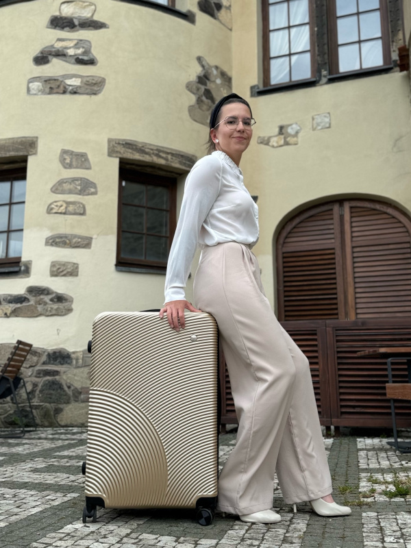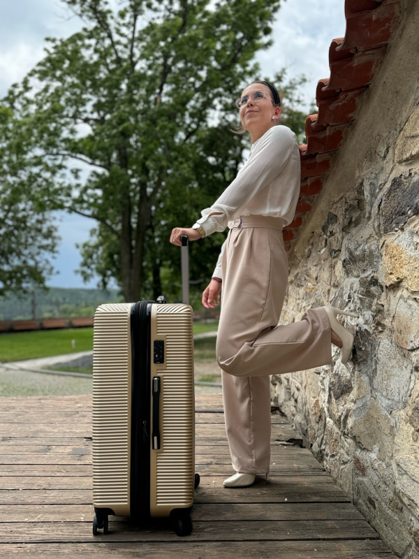 Elegantní velký kufr s rozšířením objemu, navržený s ohledem na praktičnost, styl a pohodlí – ideální pro ženy, které cestují s vkusem.