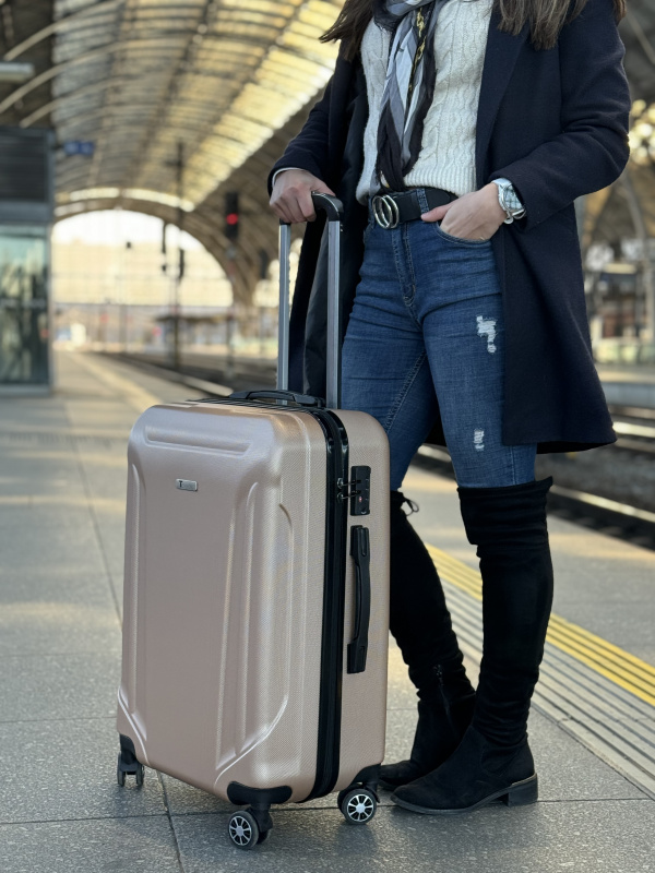 Elegantní kufr v oblíbené barvě champagne je skvělou volbou pro ženy, které hledají styl, odolnost a praktičnost za dostupnou cenu.