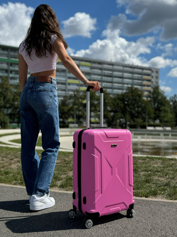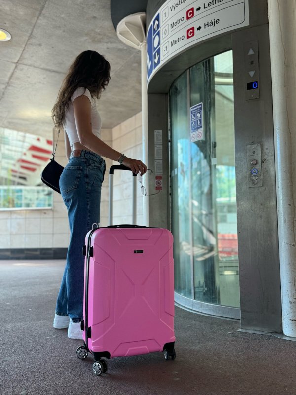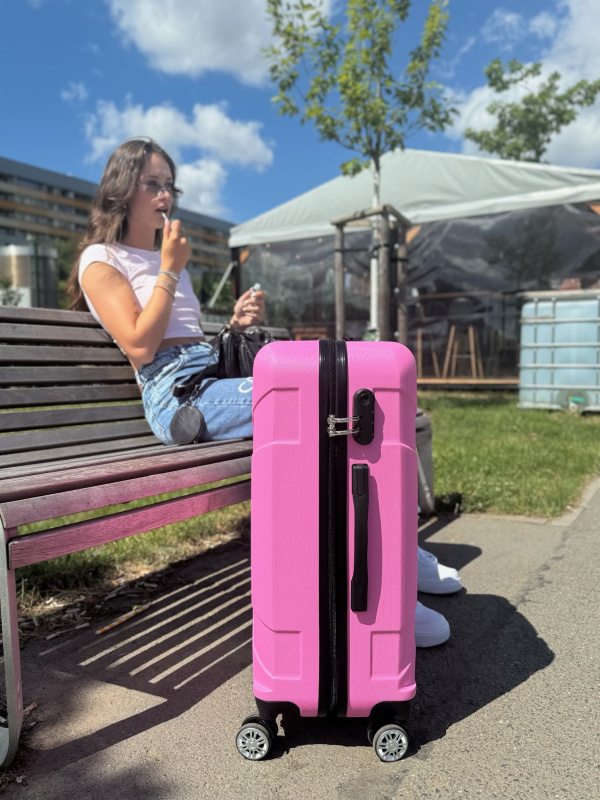 Lehký a stylový kufr v růžové barvě, ideální pro ženy, které chtějí cestovat elegantně a mít vše důležité po ruce.