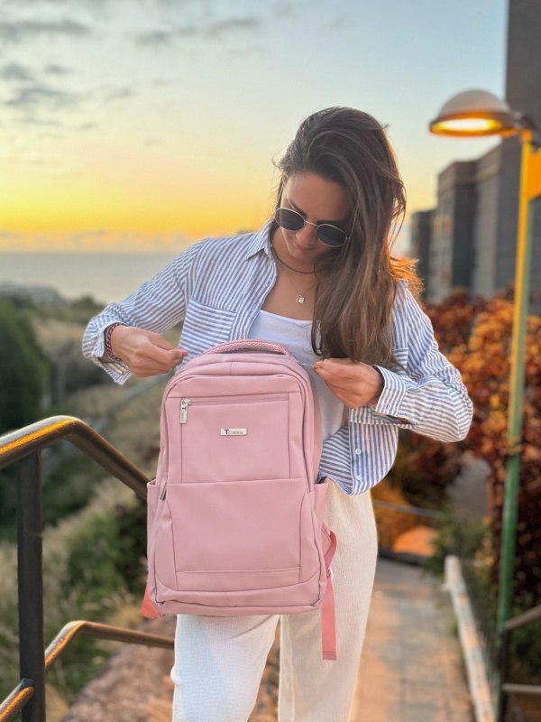 Vyroben z kvalitní PU kůže – pevný, odolný a zároveň stylový materiál, který nepromokne a snadno se čistí. Růžové provedení dodává batohu elegantní a moderní vzhled.
