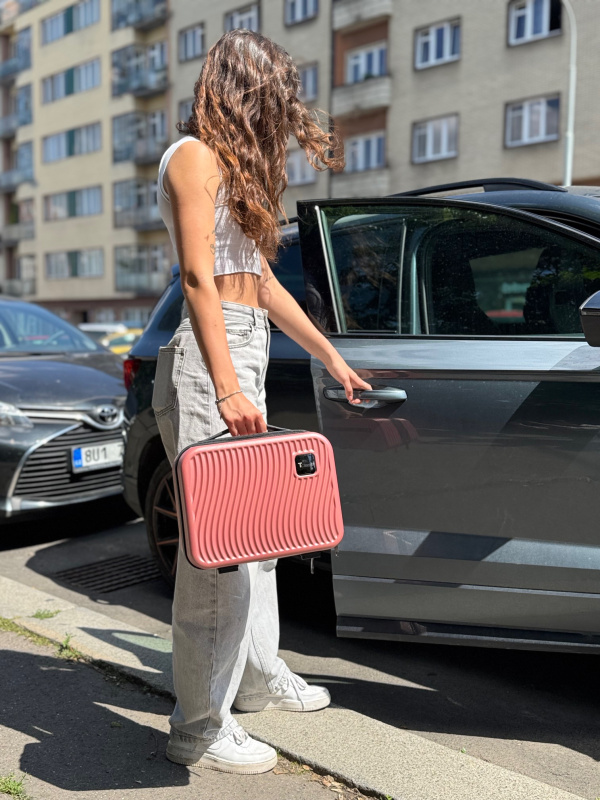 Add a dose of elegance to your travels with this pink T-class cosmetic case. Its modern design and practical features make it an irresistible companion on every trip. The case is made of ABS material and offers plenty of space for all your beauty products.