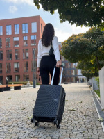 This is a copolymer that is very common in shell luggage. Suitcases made of ABS are characterised by their resistance to damage even at low temperatures. This material absorbs shock. The price of suitcases made of this material is also an indisputable advantage. The disadvantage is that the ABS material can easily crack when roughly handled, especially if it is made of a thin layer.