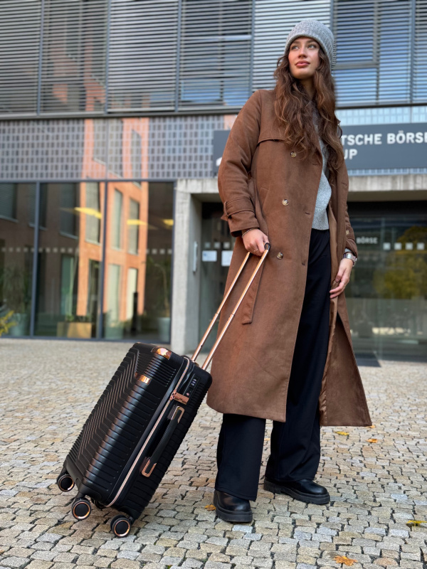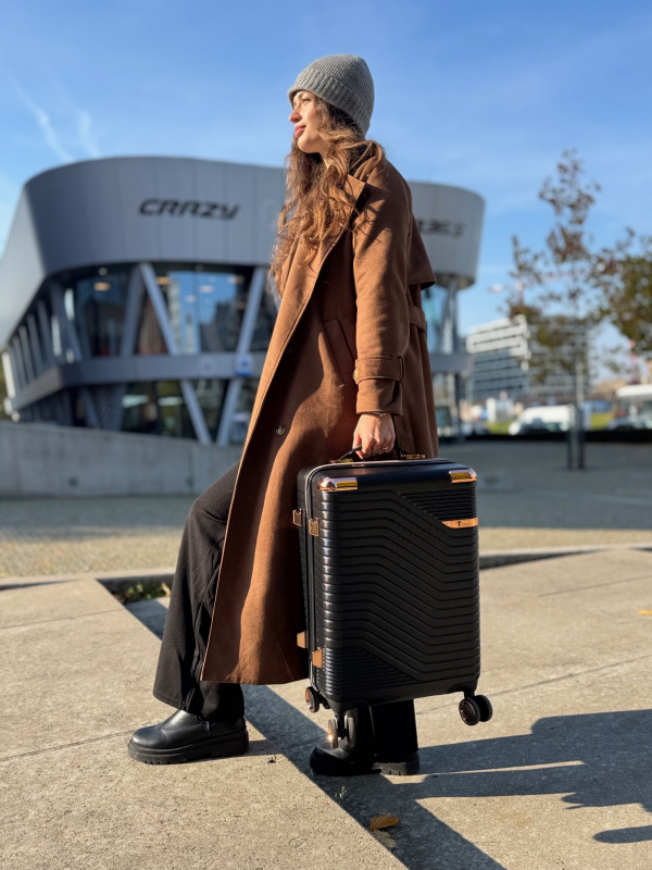 Elegantní kabinový dámský kufr T-class® 218 🖤 je ideálním společníkem pro cestovatele, kteří chtějí kombinovat vkus, odolnost a pohodlí. Rozměrově odpovídá většině leteckých společností pro palubní zavazadla, takže jej můžete vzít přímo na palubu letadla. Vhodný na krátké dovolené, služební cesty i prodloužené víkendové výlety.