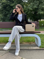 Vnitřek kufříku je rozdělen na dvě části – otevřenou kapsu a uzavíratelnou část se síťovanou kapsičkou. Perfektní pro organizaci štětců, krémů nebo parfémů.