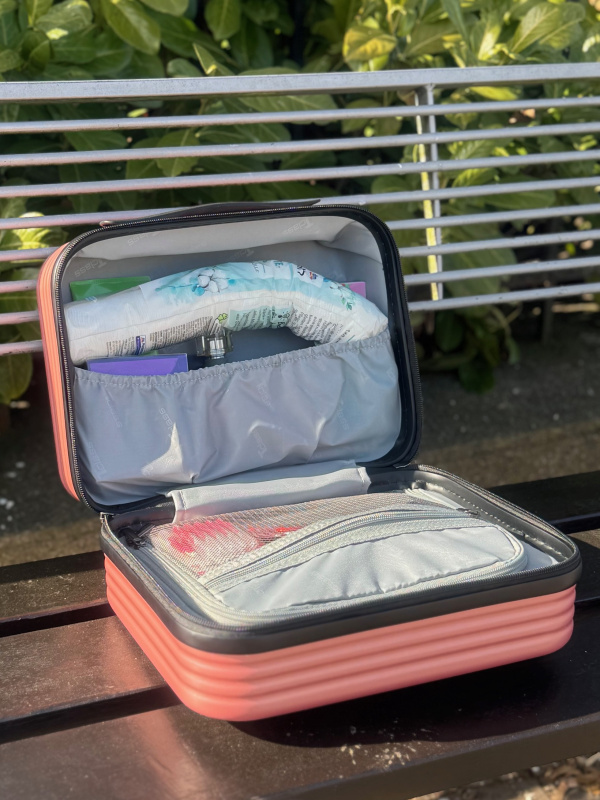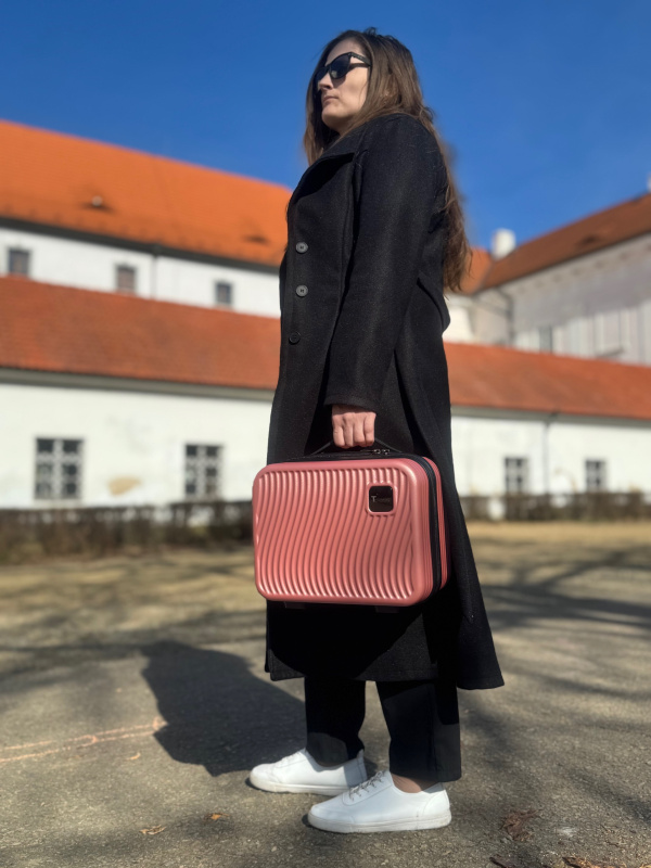 Růžový kosmetický kufřík pro mladé ženy a slečny, které chtějí cestovat stylově – ideální na make-up i doplňky.