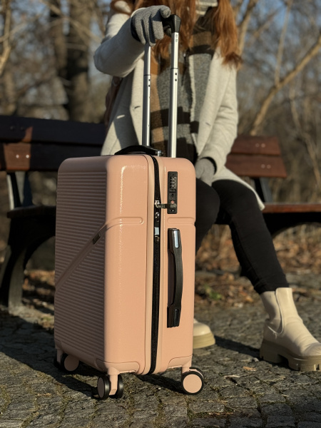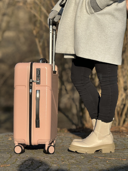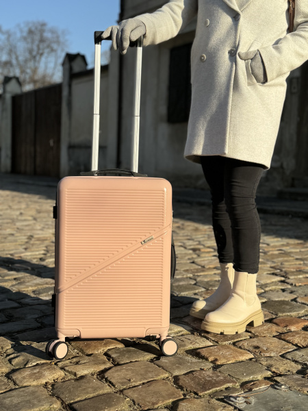 Moderní růžový kufr, který vyniká nejen barvou, ale i funkčností – ideální pro každodenní i letecké cestování.