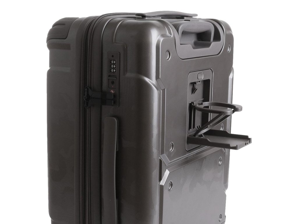 Madla jsou zapuštěna do speciálních konzolí skrz korpus kufru, což výrazně snižuje riziko jejich vytržení. Zesílená teleskopická rukojeť zajišťuje pohodlné vedení kufru.