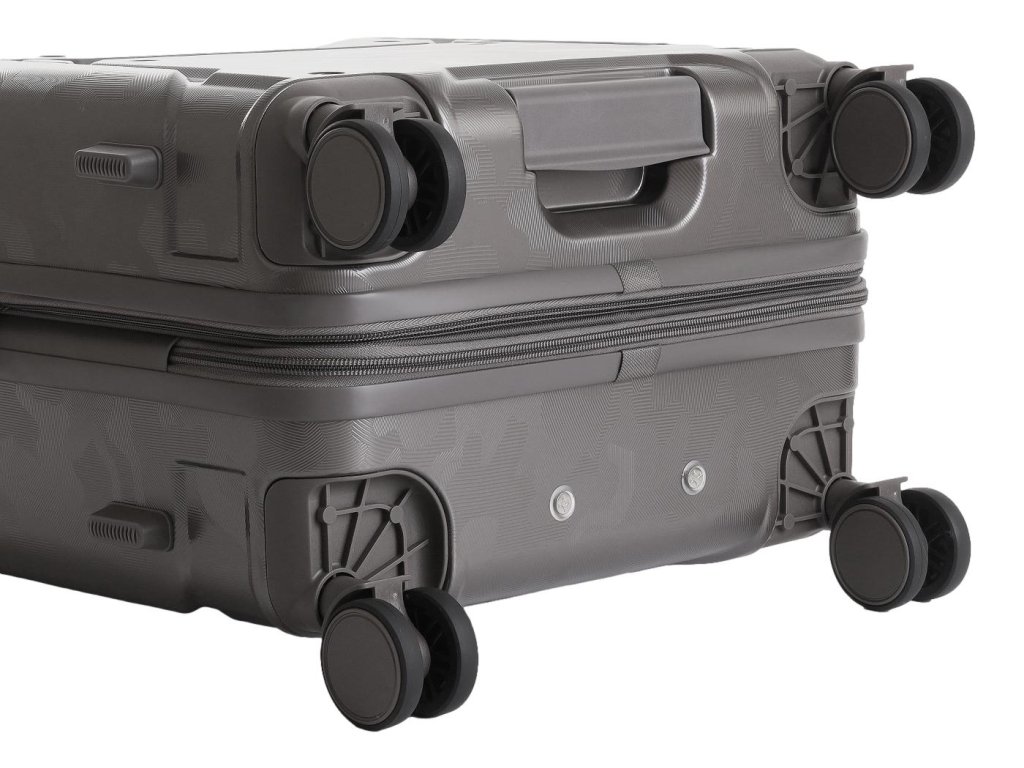 Kufr je osazen čtyřmi dvojitými kolečky otočnými o 360°. Jsou tichá, stabilní a snadno vyměnitelná, což zajišťuje plynulý pohyb ve všech směrech.