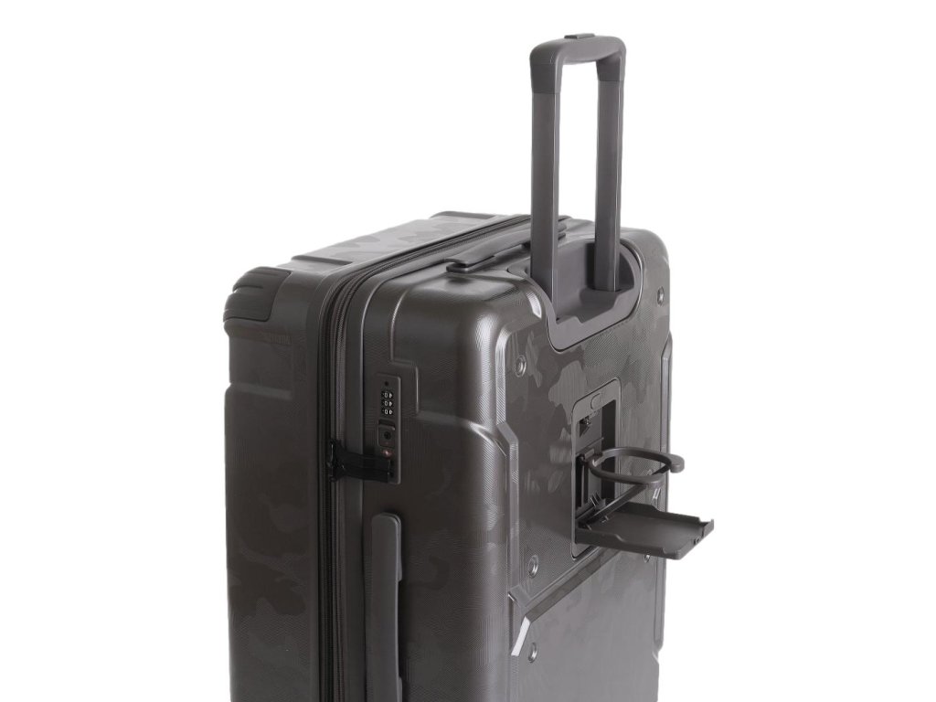 Madla jsou zapuštěna do speciálních konzolí skrz korpus kufru, což výrazně snižuje riziko jejich poškození. Zesílená teleskopická rukojeť zajišťuje pohodlné ovládání.