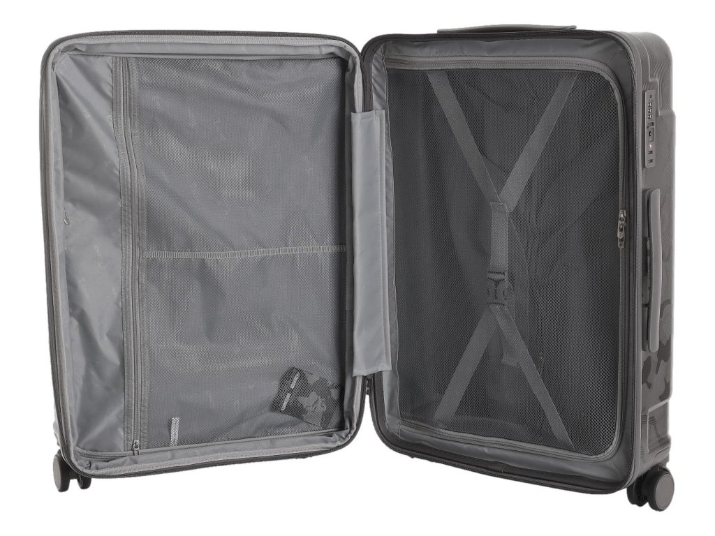 Skořepina kufru je vyrobena ze 100% polykarbonátu, nejodolnějšího materiálu používaného u prémiových cestovních kufrů. Je extrémně pevný, ale zároveň pružný, díky čemuž dokáže absorbovat nárazy bez poškození.