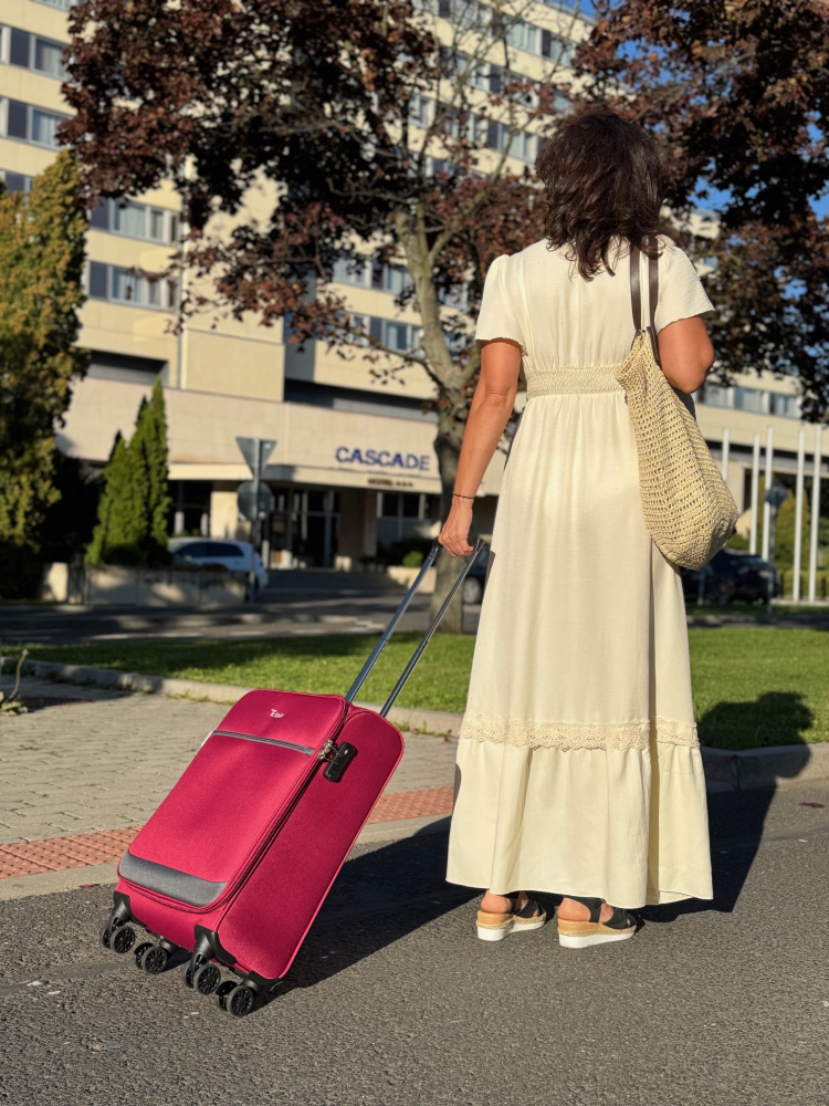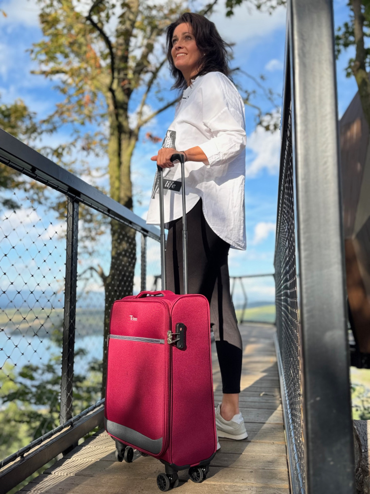 S rozměry 57,5 × 38 × 20 cm a hmotností pouhých 2,2 kg splňuje tento kufr požadavky většiny leteckých společností na příruční zavazadlo. Ideální pro cestování nalehko, bez nutnosti odbavení.