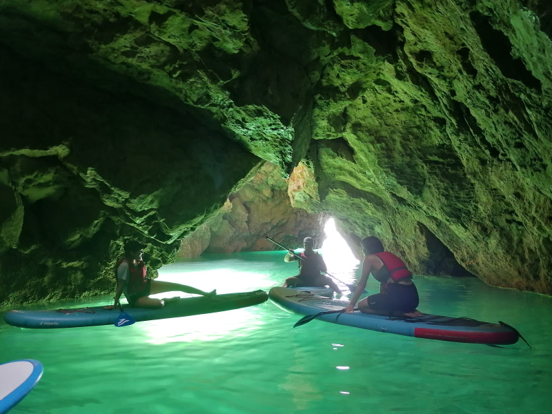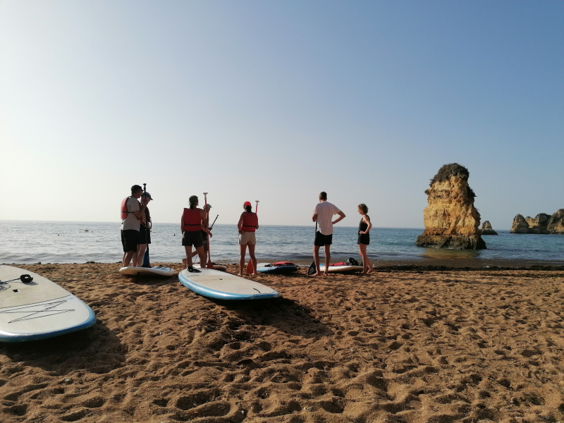 Přes den můžete vyrazit ideálně na paddleboardu z Praia Dona Ana mezi krásné útesy, kde můžete plout podél pobřeží, proplouvat jeskyněmi a skalními útvary. Opravdu nezapomenutelný zážitek! Tyto dramatické útesy jsou jedním z nejfotografovanějších míst v celém Portugalsku a vytváří nádherné přírodní jeskyně, které můžete prozkoumat kayakem nebo paddleboardem.