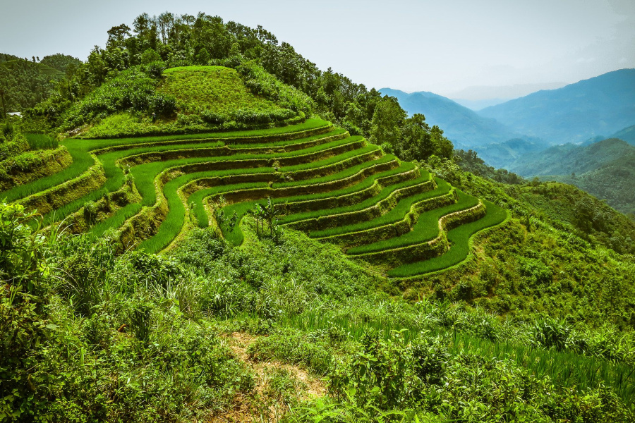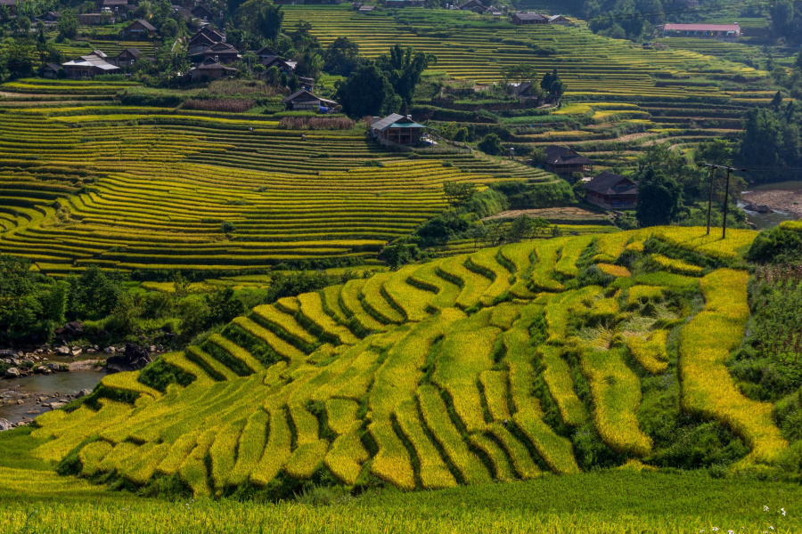Terasovitá rýžová pole jsou rozhodně fenoménem, který proslavil Vietnam celosvětově. Nejsou dílem přírody, ale jsou důkazem, jak si lidé dokonce i s poměrně primitivním vybavením dokáží podmanit, ale přitom nezničit přírodu, která jim pak dává vše, co k životu potřebují. Rýžová pole se v závislosti na roční době zbarvují do různých odstínů zelené a zlaté barvy a vytváří tak úchvatnou podívanou. Vydáte-li se do hor na severu, pak nejkrásnější zelená pole uvidíte na začátku léta. Do omračující zlaté barvy pak rýže dozrává v srpnu, kdy také začíná sklizeň. A to je podívaná sama pro sebe, neboť lidé z horských kmenů, které ty největší rýžové terasy obstarávají, se pouští do každoroční úmorné práce – posekat, nechat proschnout, vymlátit zrna, zorat pole. Během zimy se pole většinou zaplní vodou, která zúrodní bahno, do kterého se potom na jaře sází zase nové rostlinky.