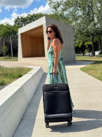 Vyrobeno z odolného polyesteru 600D, který je pevný a zároveň lehký. Kožené doplňky chrání exponovaná místa a dodávají kufrům elegantní vzhled.