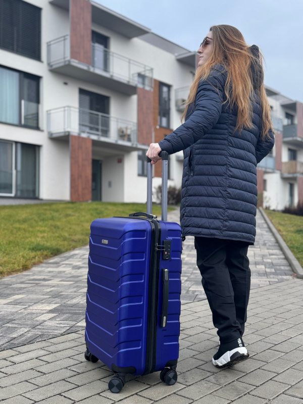 Kombinace ABS plastu a polykarbonátu zajišťuje pevnost, pružnost a dlouhou životnost i při náročnějším cestování. Matná modrá barva je stálobarevná a odolná proti poškrábání.