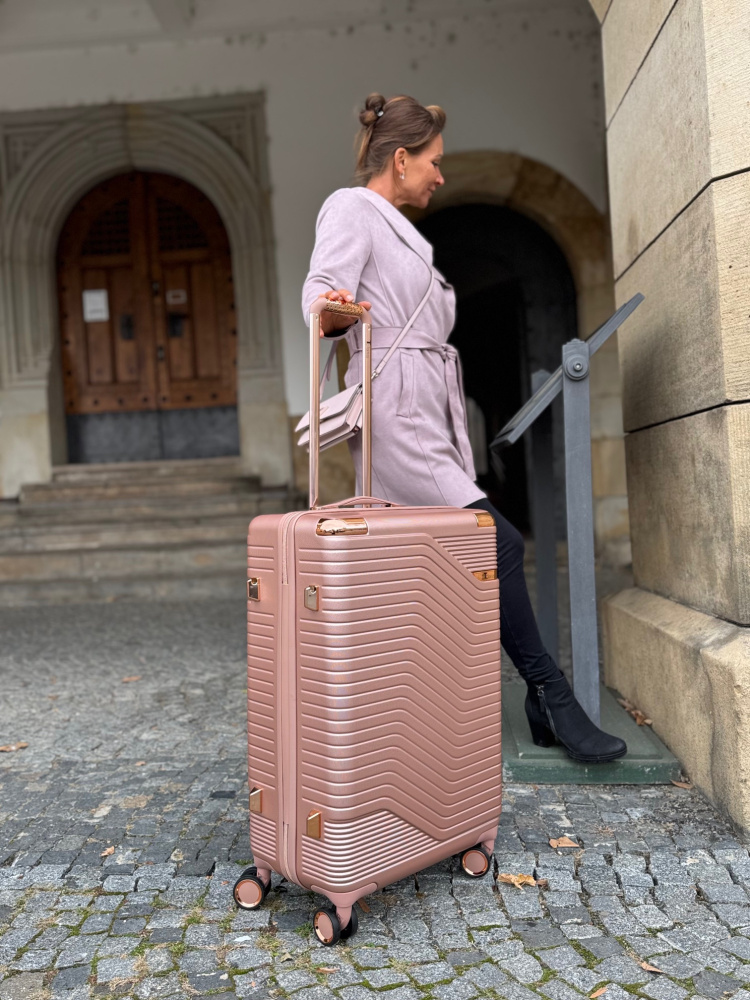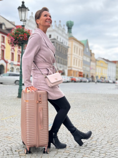 Luxusní a praktický kufr ideální na cca. týdenní cesty. Model T-class® 218 v růžově-zlatém provedení, spojuje eleganci, odolnost a funkčnost.
