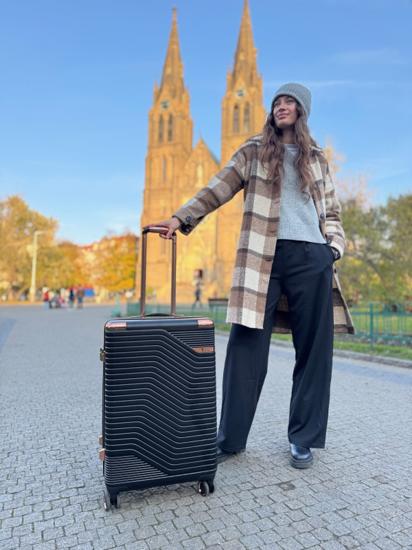 Elegantní střední kufr T-class® 218 🖤 nabízí ideální poměr mezi kapacitou, odolností a komfortem. Je perfektní pro týdenní dovolenou nebo služební cestu. Díky kombinaci kvalitních materiálů, moderní konstrukce a tichého pojezdu je spolehlivým partnerem pro všechny typy cestování.