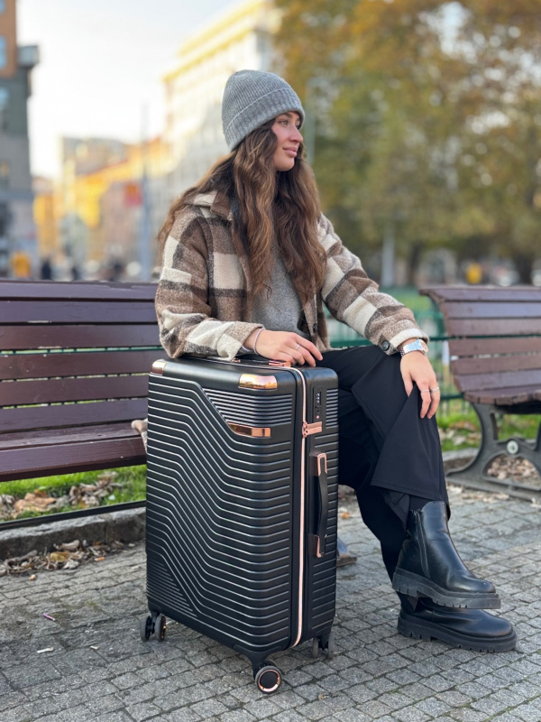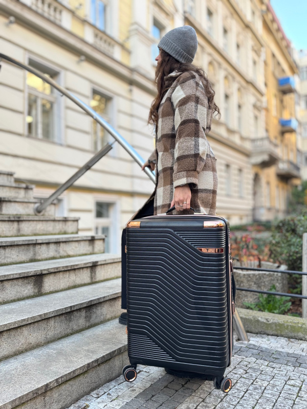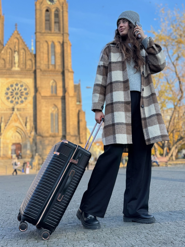 Kufr je vyroben z kombinace ABS a polykarbonátu, které zajišťují mimořádnou odolnost vůči nárazům a deformacím. Strukturovaný matný povrch lépe odolává poškrábání a černá barva dodává nadčasový vzhled, který ladí ke každému stylu.