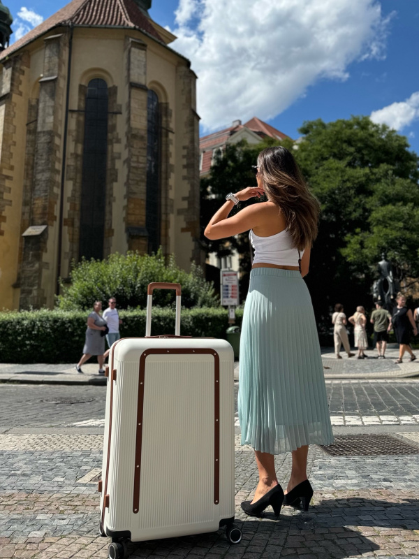 Zapuštěný tříčíselný TSA zámek umožňuje bezpečnostní kontrolu bez poškození kufru – ideální na většinu mezinárodních letišť včetně pražského.